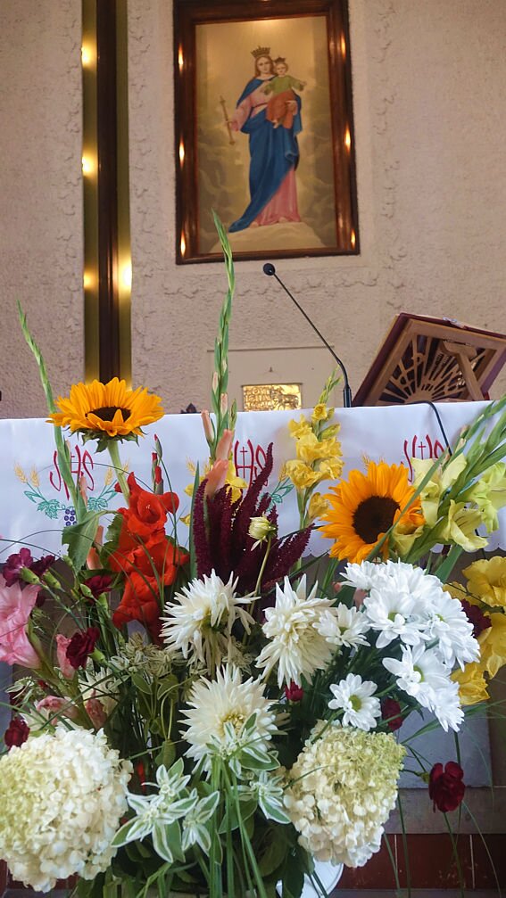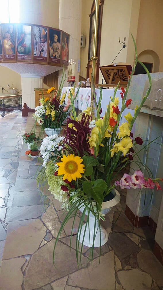 Bardzo dziękuję czterem paniom, które razem z panem kościelnym w piątek posprzątały kościół i udekorowały go bukietami przed dniem Matki Bożej Wniebowziętej.
