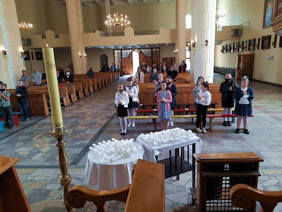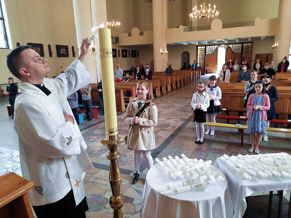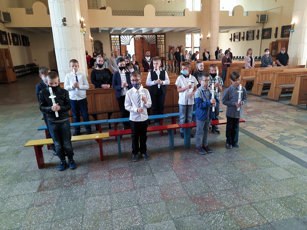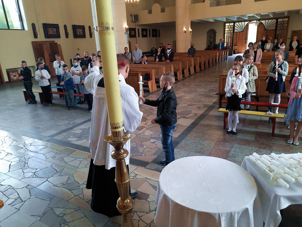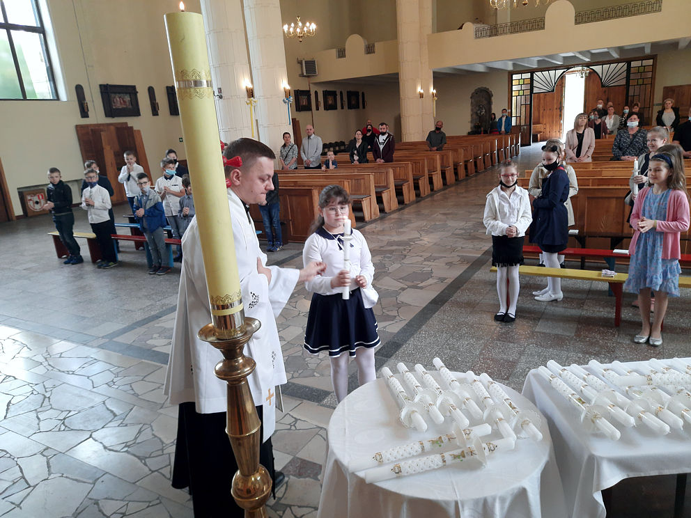 Dzieci, które 16 maja przystąpią do I Komunii św., dzień wcześniej przeżyły uroczystość odnowienia przyrzeczeń chrzcielnych. I tak, jak w czasie Chrztu św., otrzymały świece, które wręczył im ks. Arkadiusz. A później był czas na nieco stresującą pierwszą w życiu spowiedź. I oby przez całe życie ta dwudziestka dwójka była wierna Chrystusowi i sakramentom…