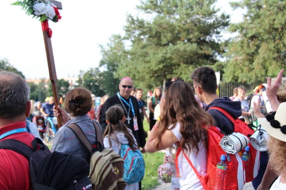 Pielgrzymi spotkali się o godzinie 7 w parafii Nawiedzenia Najświętszej Maryi Panny na Syberce w Będzinie, gdzie rozpoczęła się Msza święta z udziałem biskupa sosnowieckiego Grzegorza Kaszaka. Sosnowiecki duszpasterz żegnał potem wychodzących na pątniczy szlak pielgrzymów. W tym samym czasie na parkingu obok będzińskiego kościoła trwało pakowanie do samochodów plecaków i bagażu uczestników pielgrzymki, z którego będą korzystać podczas postojów. Jak podkreślili pielgrzymujący w drodze potrzebne są podstawowe rzeczy, a im mniej weźmie się ich ze sobą, tym lepiej.