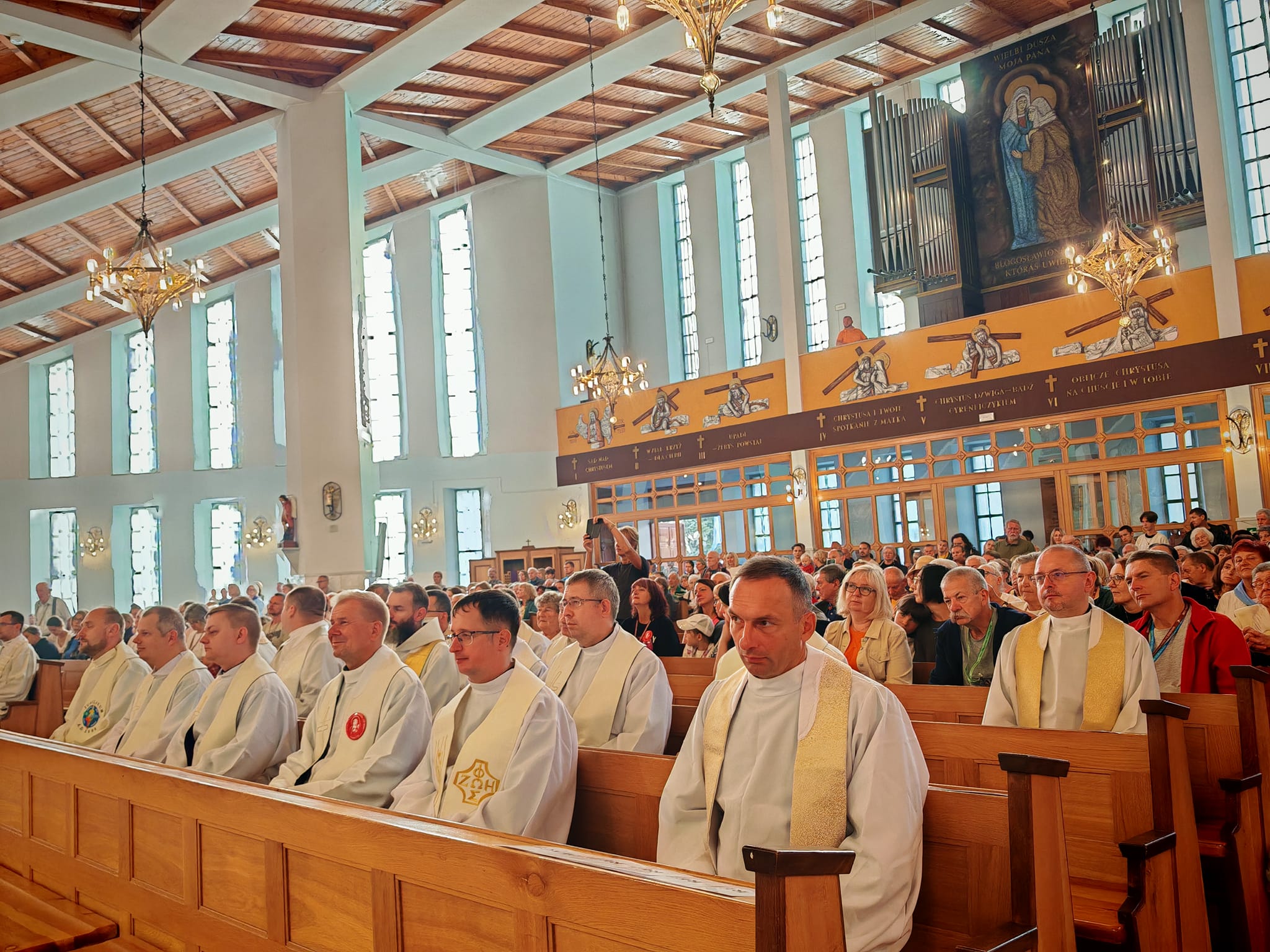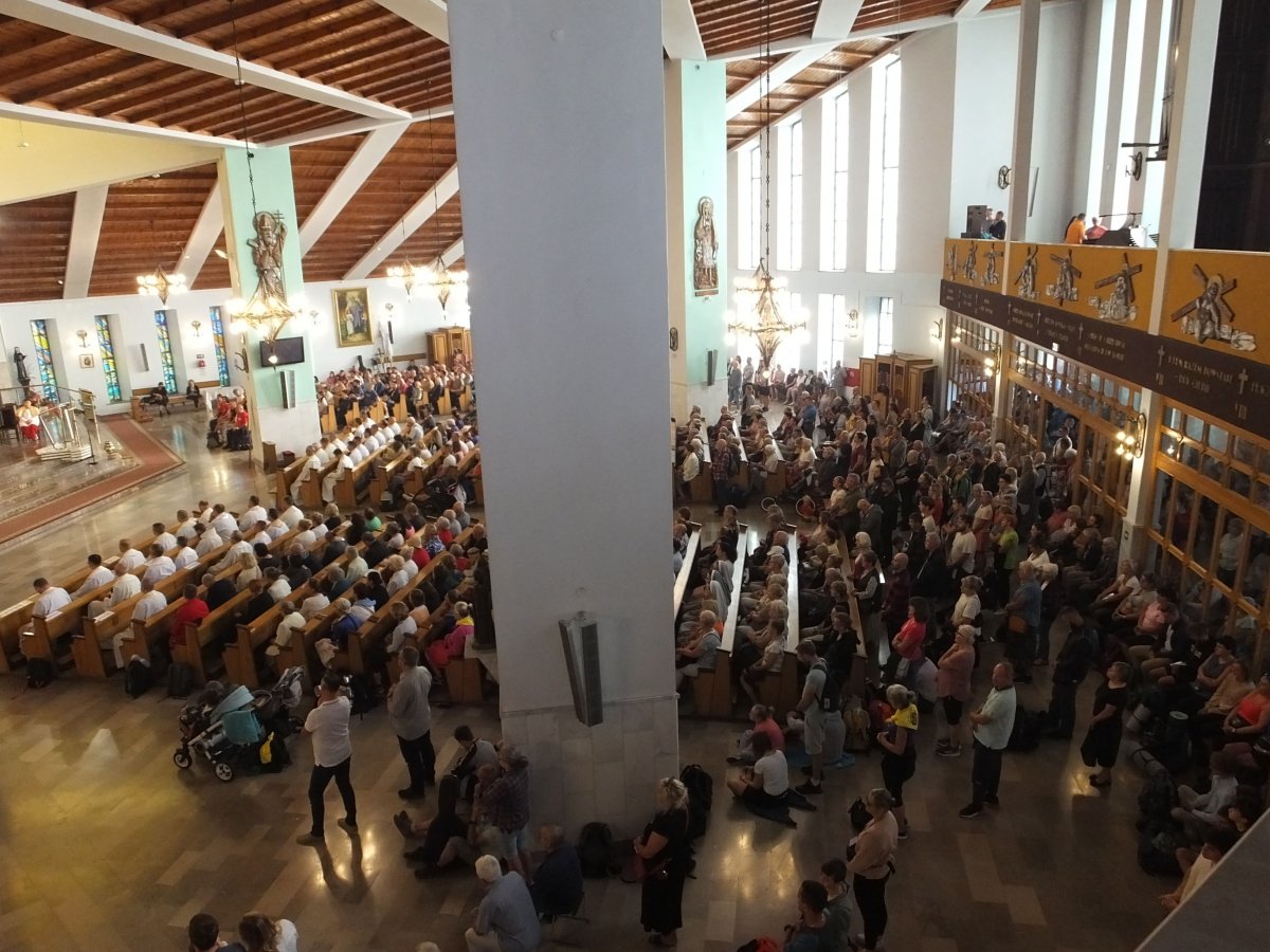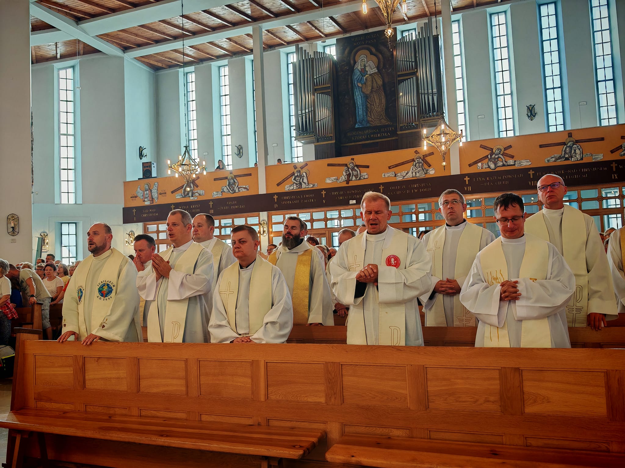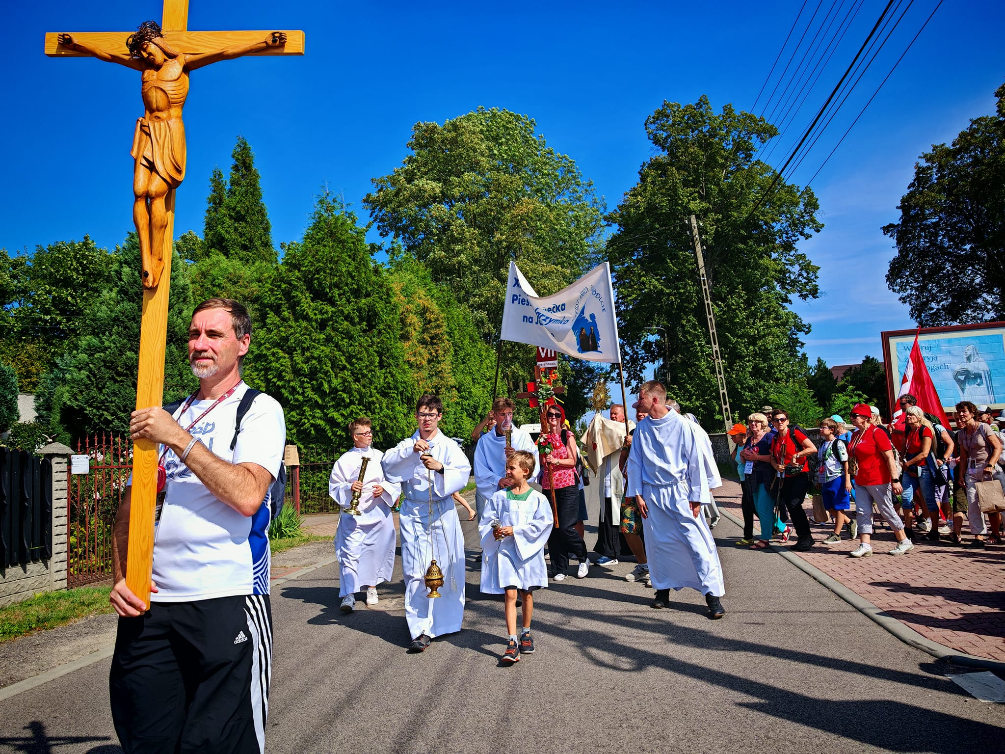 Pielgrzymi m.in. z Sosnowca, Czeladzi, Będzina i Dąbrowy Górniczej spotkali się o godzinie 7 w parafii Nawiedzenia Najświętszej Maryi Panny na Syberce w Będzinie, gdzie rozpoczęła się Msza święta z udziałem biskupa sosnowieckiego ks. Artura Ważnego.