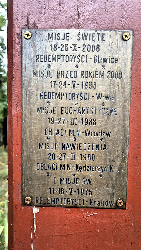 Krzyż misyjny znajduje się przed wszystkimi świątyniami. Jest pamiątką m.in. poświęcenia placu, na którym później stanął kościół.