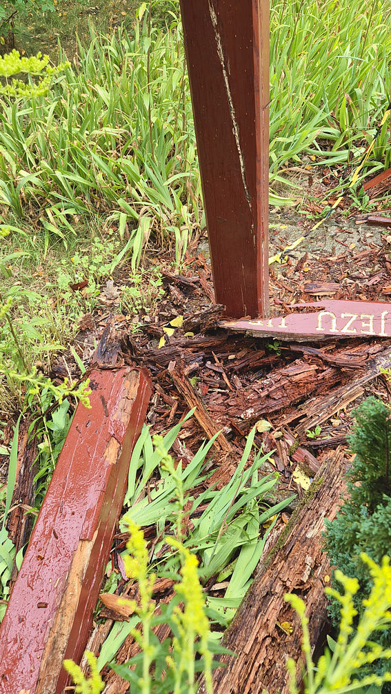 Wszystko ma swój czas – mówi Mądra Księga. I przyszedł czas na Krzyż Misyjny. 4 sierpnia wieczorem rozpadło się zbutwiałe drewno tworzące dotychczasowy krzyż przy wejściu na plac kościelny. Czas zatem szukać stolarza, który wykona nowy. I... sponsorów jego wykonania...
