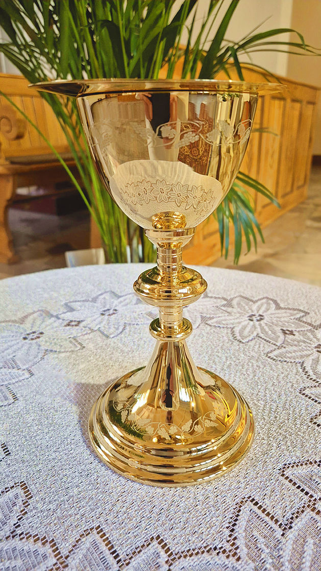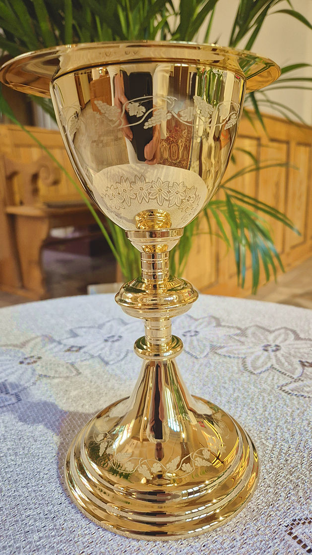 Na Mszy św. o godz. 8.00 poświęciłem 21 września nowy kielich – dar jednego z kół różańcowych i patenę do niego – dar dwóch parafianek.