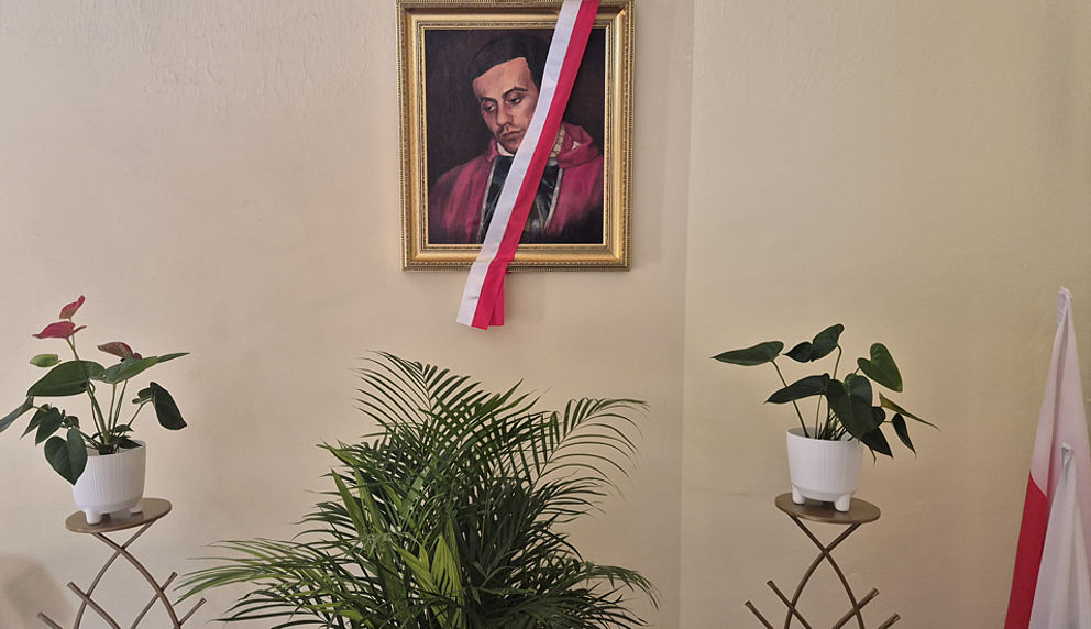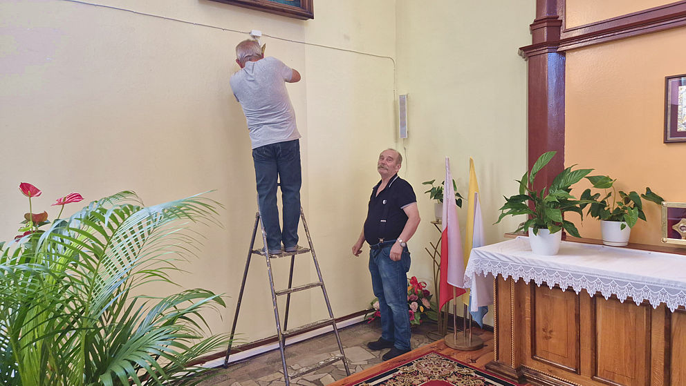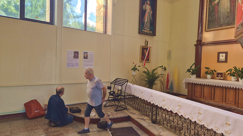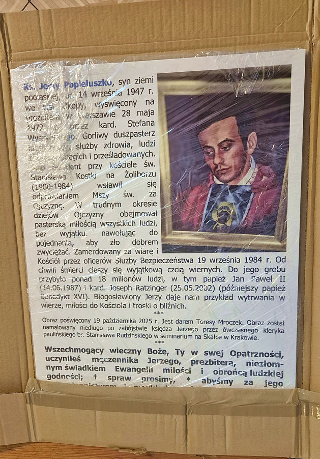 Bardzo dziękuję Franciszkowi Popowskiemu i Waldemarowi Paździorowi za montaż obrazu. Niedługo obok zawiśnie też plansza z życiorysem i modlitwą do św. ks. Jerzego.
