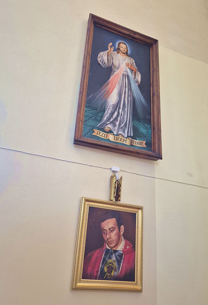 Na bocznej ścianie kaplicy ku czci św. Jana Pawła II jest już zamontowany obraz ks. Jerzego Popiełuszki. Obraz o wymiarach 76 na 67 cm. jest darem śp. Teresy Mroczek. Jej życzeniem przed śmiercią było, o czym poinformował mnie syn, ks. Krzysztof Mroczek, by ten wizerunek znalazł się w naszej świątyni. Obraz został namalowany niedługo po zabójstwie księdza Jerzego przez ówczesnego kleryka paulińskiego br. Stanisława Rudzińskiego w seminarium na Skałce w Krakowie. Więcej przeczytasz tutaj...