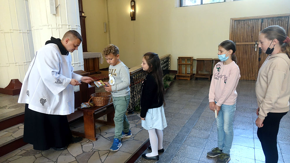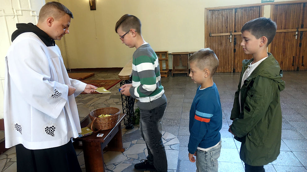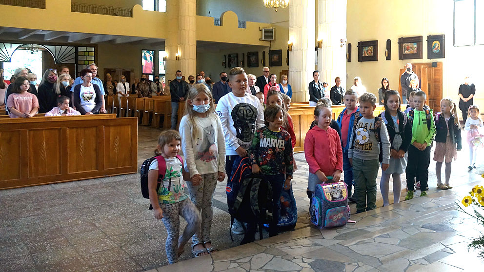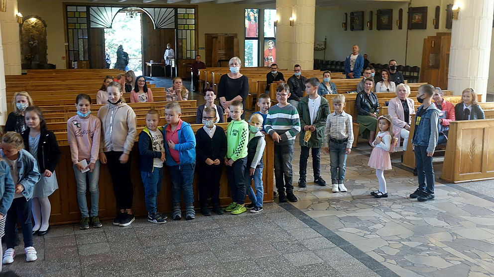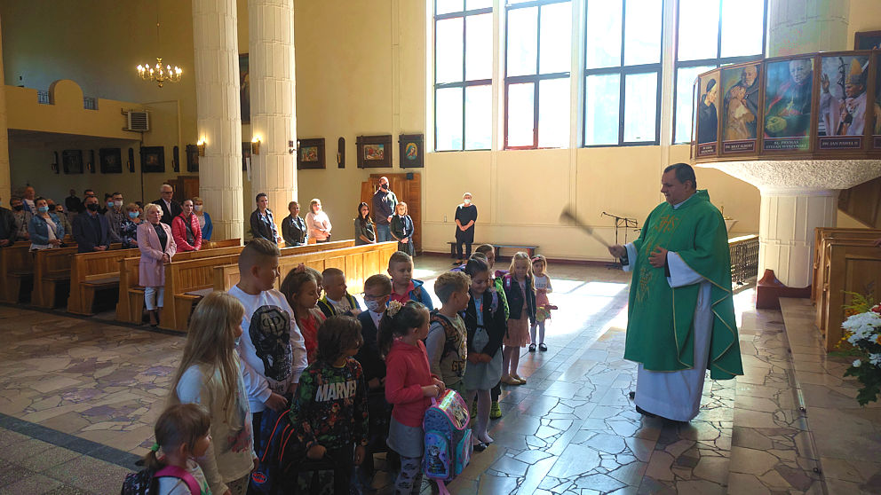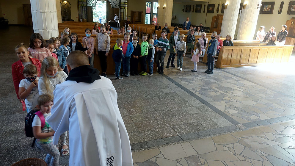 W pierwszą niedzielę po wakacjach dzieci przyniosły do kościoła swoje narzędzia pracy. Ksiądz proboszcz poświęcił tornistry, worki, piórniki i co tam jeszcze kto nosi do szkoły. A po Mszy św. ks. Arkadiusz każdemu wręczył książeczkę, dumnie nazwaną indeksem (jak na studiach), do której najmłodsi będą wklejać obrazki nawiązujące do niedzielnych Mszy św. Dodatkowo oczywiście był cukierek. Zatem: słodkiego nowego roku…