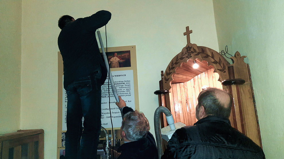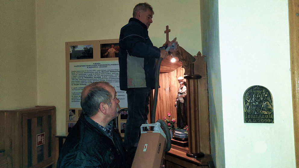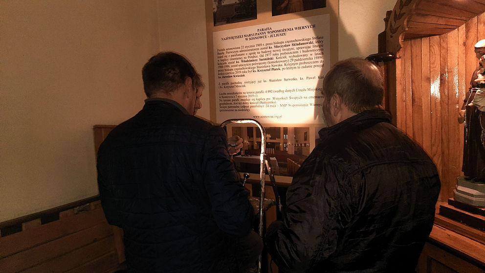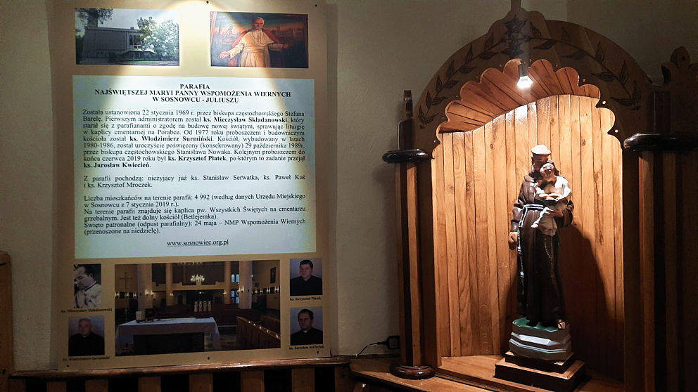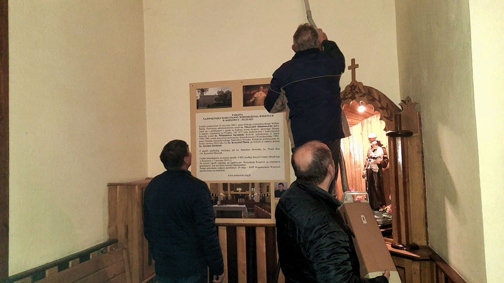 W przedsionku (kruchcie) naszego kościoła od kilku dni wisi tablica informacyjna z podstawowymi danymi o naszej parafii. Teraz została ona podświetlona. A to dzięki naszej niezastąpionej trójce. Pracę tę wykonali Waldemar Paździor, Franciszek Popowski i Marek Nimmergut. Przy okazji warto zobaczyć po drugiej stronie tablicę upamiętniającą konsekrację kościoła.