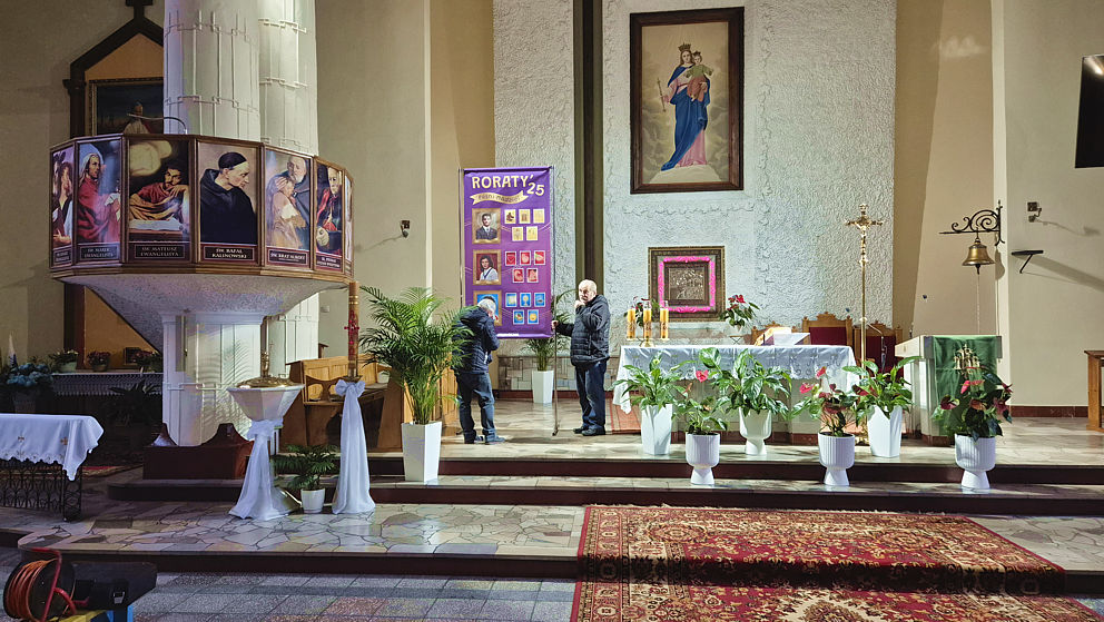 Najbliższe dni warto więc poświęcić np. na zakup lampionów i latarni adwentowych. Są dostępne m.in. w marketach budowlanych. O zbliżających się Roratach przypomina już baner w prezbiterium kościoła.
