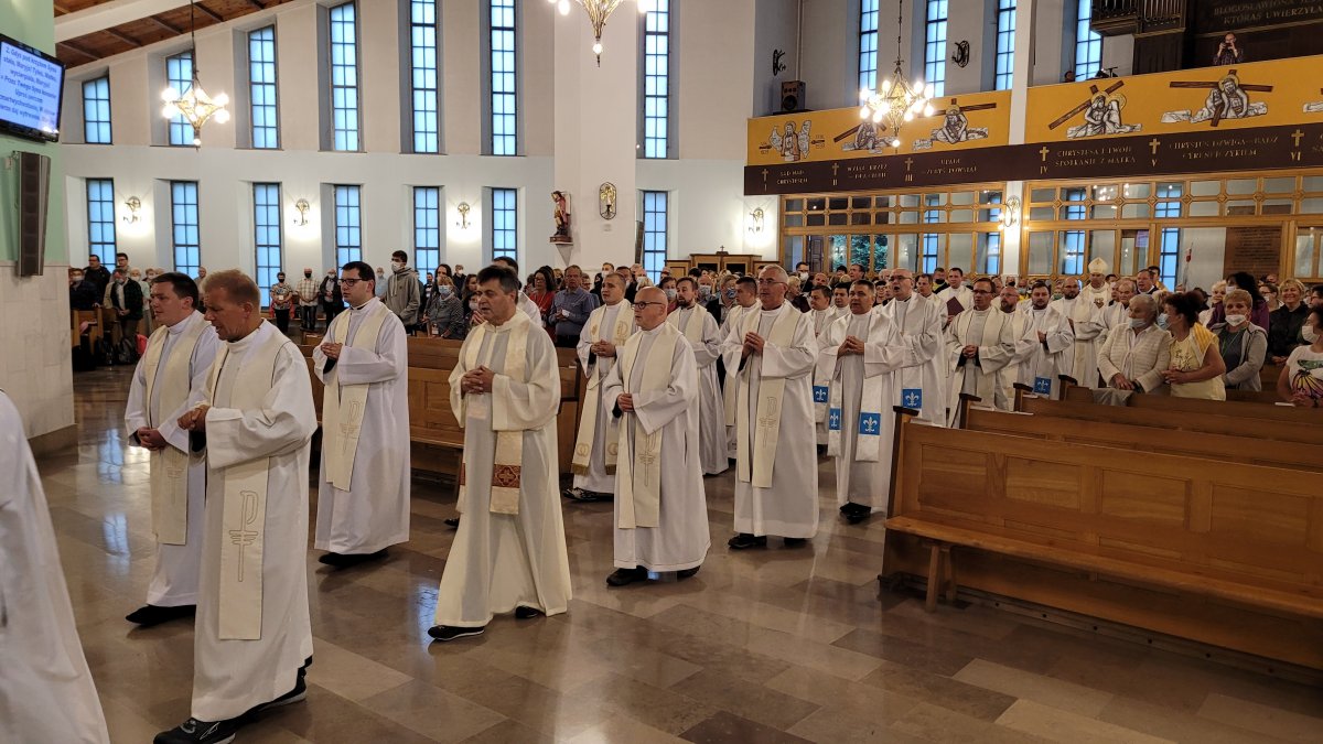 Zanim pielgrzymi wyruszyli na pątniczy szlak o godzinie 7 wzięli udział we mszy świętej, sprawowanej w kościele pw. Nawiedzenia NMP w Będzinie-Syberce, czyli Sanktuarium Polskiej Golgoty Wschodu. Eucharystię odprawił i homilię wygłosił wspomniany ordynariusz diecezji sosnowieckiej - biskup Grzegorz Kaszak. Po godzinie 8 rozpoczął się wymarsz Sosnowieckiej Pieszej Pielgrzymki na Jasną Górę, zwanej popularnie "Zagłębiowską". W tym roku, m.in. z powodu obostrzeń sanitarnych, pielgrzymi mają na noc wracać do domu zorganizowanym transportem, a potem rano znów zjawiać się na trasie pielgrzymki w tym miejscu, do którego dotarli dzień wcześniej.